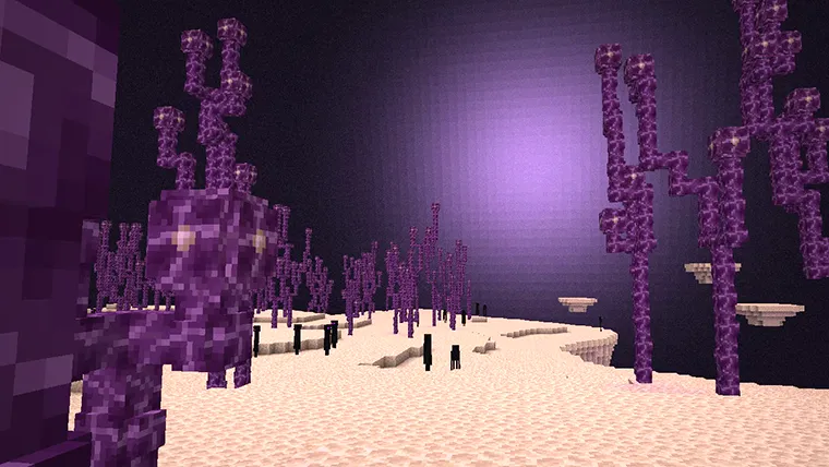 Flashs de lumière illuminant l’End de violet avec bruitages